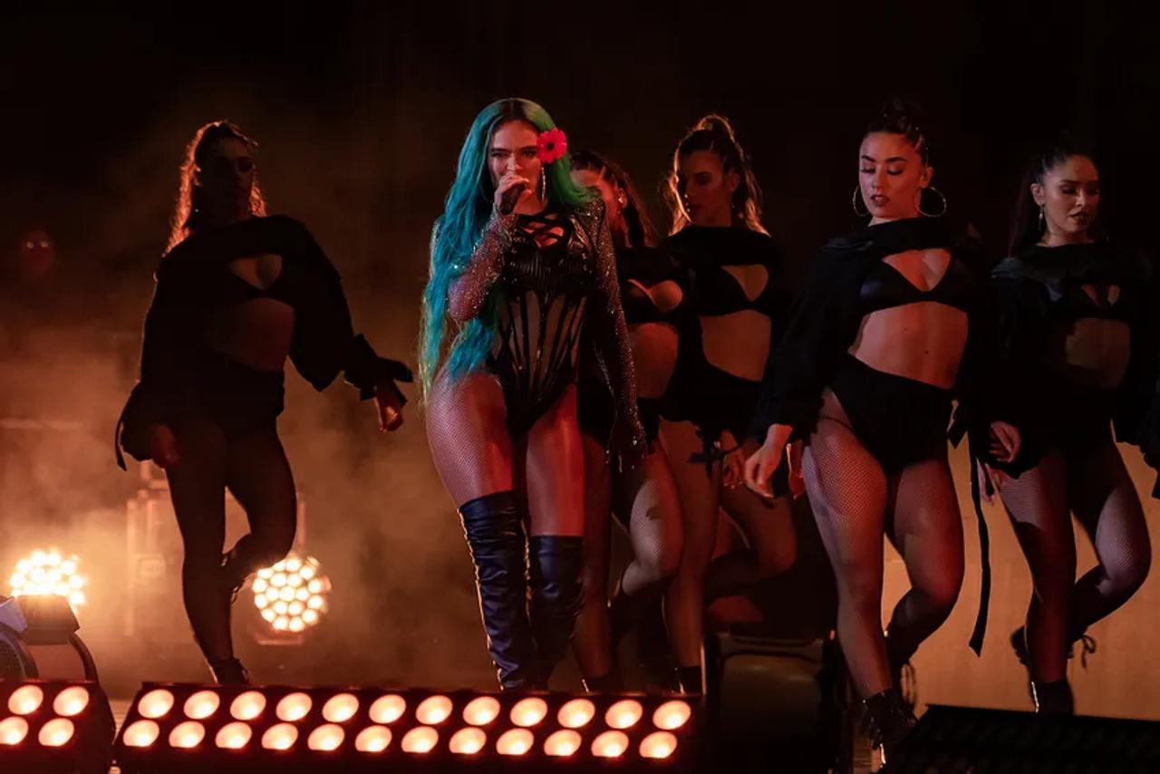 Algunos de los vestuario de Karol G en CR fueron diseñados por el tico Mauricio Cruz. Foto: Move Concerts/Melvin Molina.