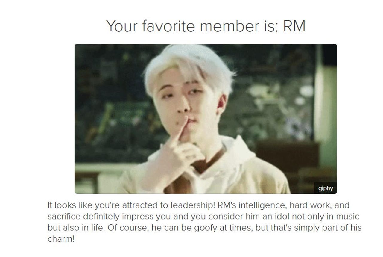 Según este quiz de Soompi a partir de hoy tengo que ser un stan de RM, el único problema es que ya lo era.