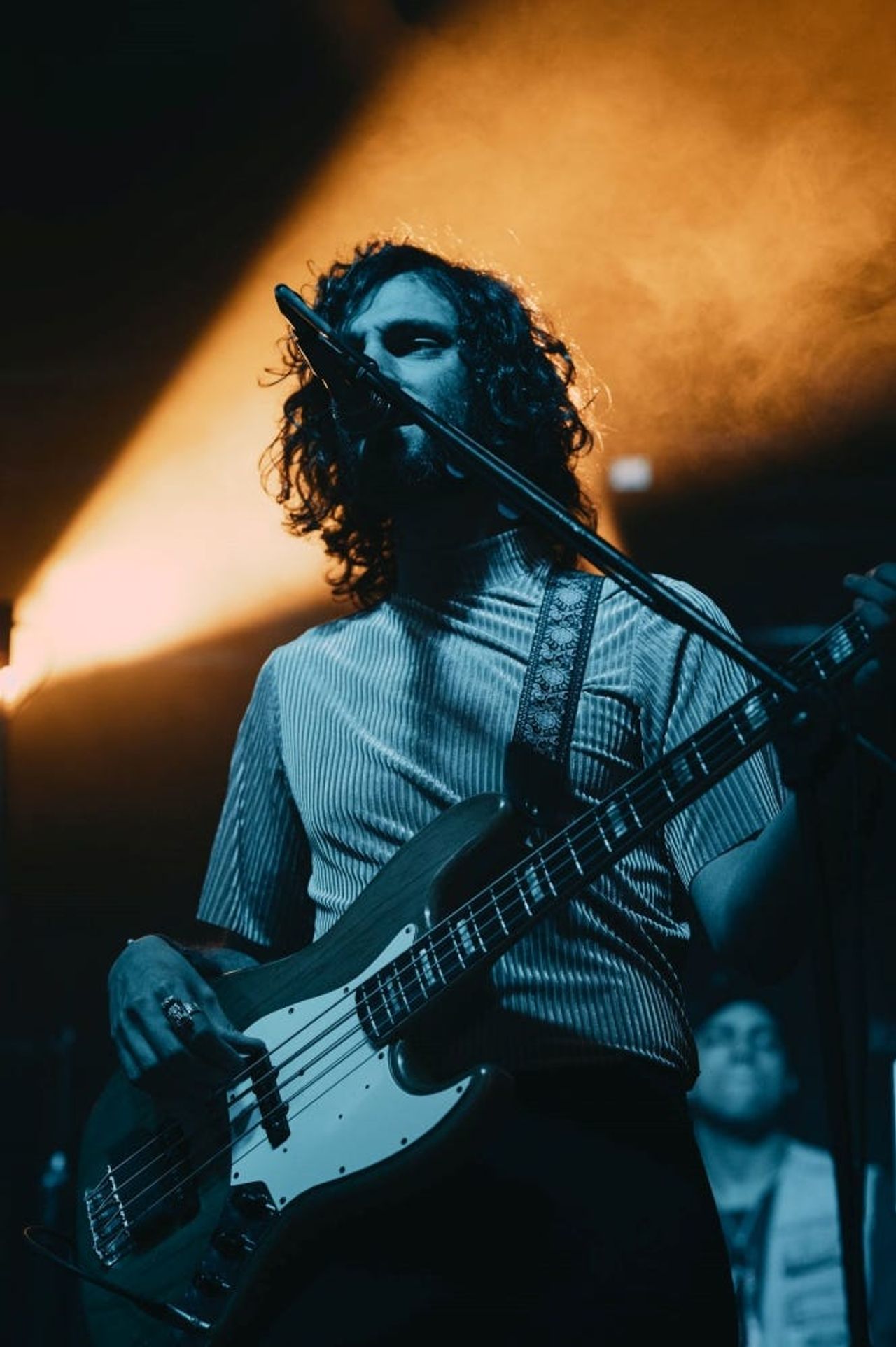 “Lo que están tocando ya se lo he oído a muchas otras bandas, pero ellos lo hacen bien”, me dijo el español que tengo al otro lado. Él no sabía nada del grupo antes de entrar acá, pero lo vi satisfecho, aunque quizá no tanto como otras personas delante mío, que se saben todas las letras de memoria, y qué dicha que es así, pues creo que Goyo, el cantante, tuvo a muchxs de esta especie en las primeras filas. Mientras lo iluminan los focos de luces intensas le vi pleno, igual que a sus compañeros de banda. Juntos forman una banda con mucha gasolina que vive unos de sus mejores momentos.