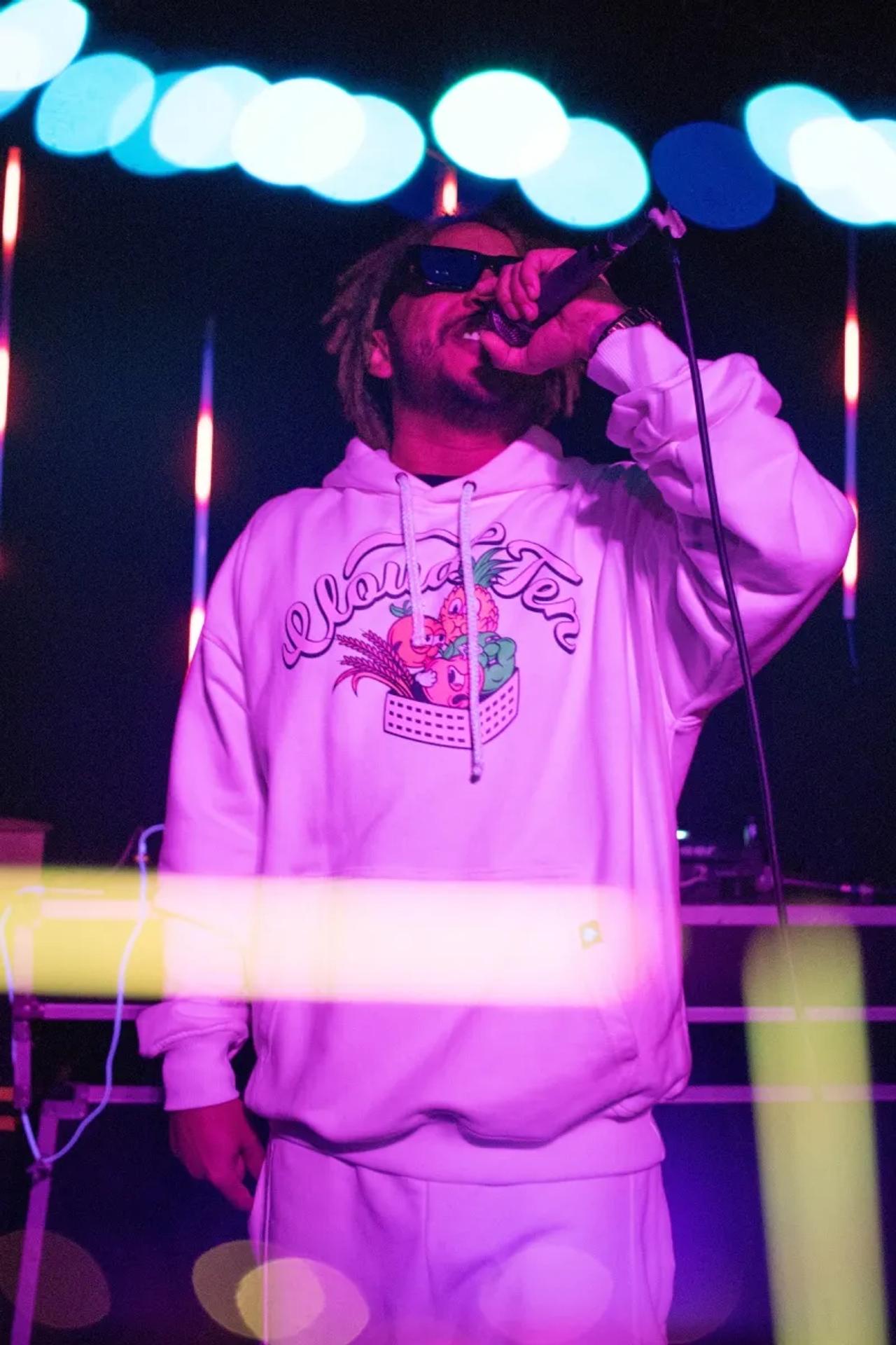 Su set empezó con el beat de “Sicko Mode” de Travis Scott, una pieza híper reconocible. Mi primer pensamiento fue “el DJ la cagó, esto no es Huba, no puede ser”. Pero en medio del sonido de sintetizadores se asomó la figura de un rastaman que caminaba quieto porque sabía lo que estaba apunto de hacer: venía a dar clases.